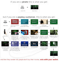 Minap kaptam egy kedves linket egyik cimborámtól, Andytől. A link alatt Cory Doctorow, kanadai blogger egyik aranyos bejegyzése olvasható a kalóz módszerekkel és a jogszerűen beszerzett DVD-k megtekintésével kapcsolatos problémákról. A cikkben található ábra (nagyban itt), melyet kicsiben mellékelek a poszthoz, kellő irónia mellett ábrázolja, hogy a jogszerű DVD megtekintésekor mit kell „átélnie” egy amerikai fogyasztónak. Szerencse, hogy hazánkban azért nem az összes DVD működik ilyen rendszerben.