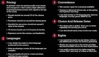 Az árképzéssel kapcsolatos feltételrendszer szerintem hűen tükrözi a filmekért rajongó és egyidejűleg azok alkotóit megbecsülő fogyasztók vélekedését: egy film letöltése ne legyen drágább, mint megnézni a moziban. Ez teljesen jogos, és nem véletlen, hogy nagyon nehezen tudja a hazai közönség tolerálni, ha egy DVD sok ezer forintba kerül. Ugyanígy teljesen életszerűnek érzem azokat a követeléseket, hogy a letöltés kényelmes és egyszerű keretek között történjék (nulla reklám és figyelmeztetés), és hogy a fogyasztó jogai világosak legyenek. Arról nem is beszélve, hogy a hatásos műszaki intézkedések (DRM) mellőzését várják el az aláírók.